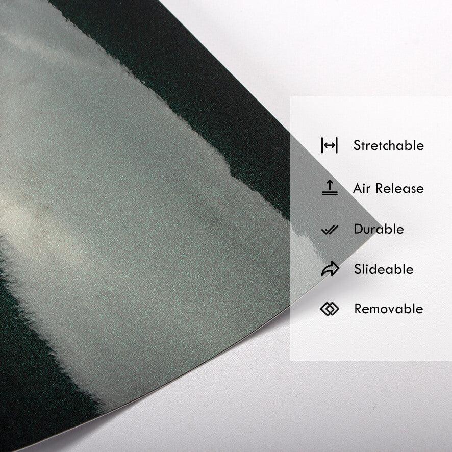 This metallic midnight green wrap is built to withstand everyday wear. It holds up well in various climates, resists water and grime, and retains its luster even after prolonged sun exposure. You can maintain its glossy appearance with simple cleaning—just use a mild soap and soft microfiber cloth.