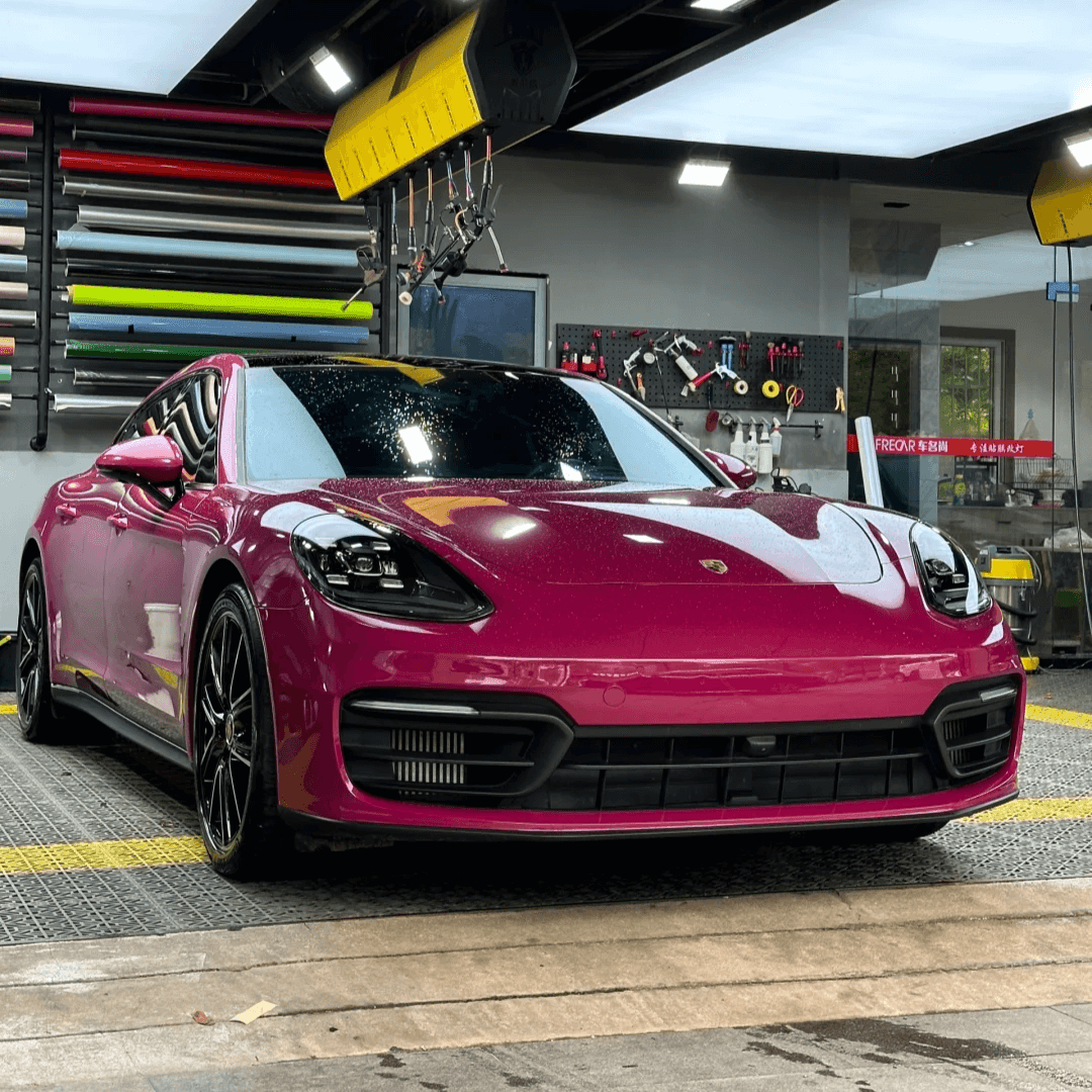 The gloss metallic rose red vinyl wrap is perfect for those who want a high-end look with personality. The color conveys passion, strength, and refinement while the metallic finish adds a layer of glamour. Under sunlight, the flakes shimmer to reveal a depth of color that feels both modern and timeless. At night, the gloss surface reflects ambient lighting for a captivating presence.